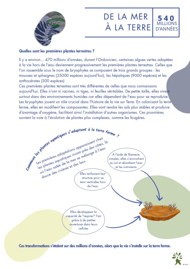 De la terre à la mermai 15, 2020Le monde marin explore la terreLes premières plantes terrestres Ere géologiquePalézozoïquePériodeOrdovicienMa500 Ma - 435 MaDistance60 mShareBook-open